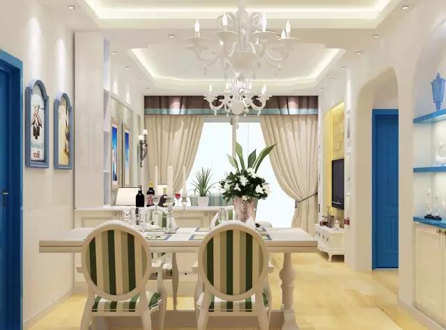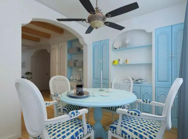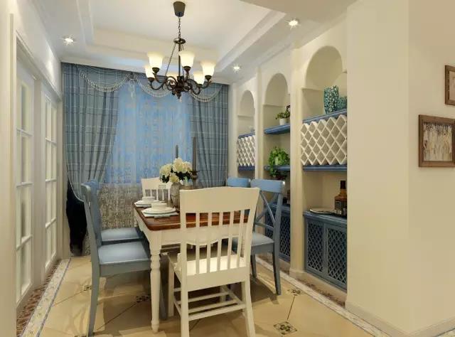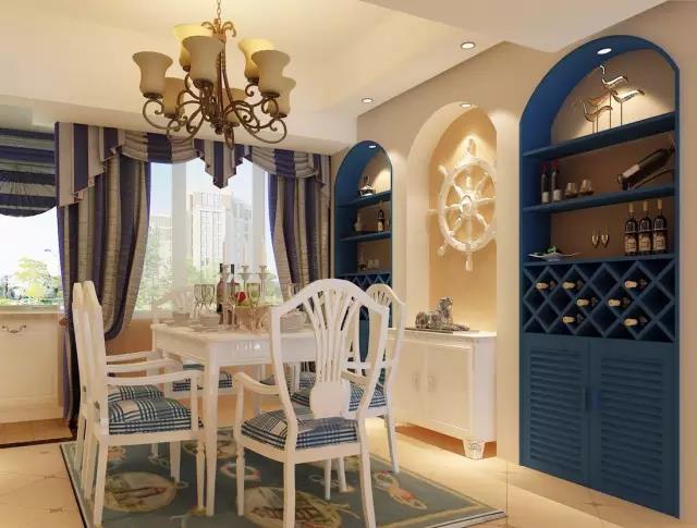 發現國內設計師很喜歡在餐廳壁櫥上來體現地中海元素哦。