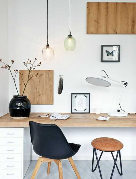 北歐風工作臺:清新的淺色原木系桌子搭配可心的綠植,簡單舒適,在這樣的環境中工作,整個心情都明朗起來。