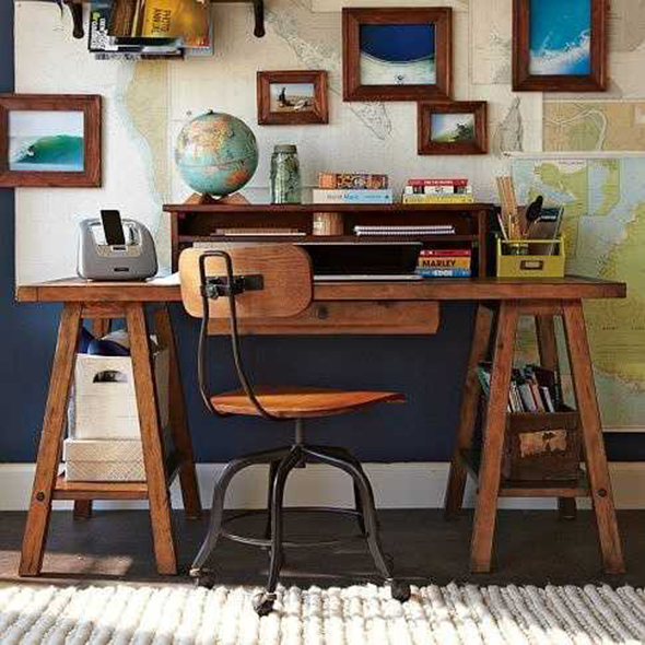 工業風工作臺:厚重或做舊處理的實木桌椅搭配適量的鐵藝元素,整個空間更顯硬朗,有種返璞歸真的敦厚和寧靜。