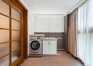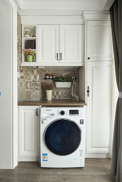 陽臺上的區域我們也應該好好利用,不要浪費每一個可以利用的小間。那么將我們的洗衣機擺放在這個角落里吧。如果你有一個開放式的陽臺,不妨將我們的洗衣機放在這里吧。在露天陽臺的一角,正好可以將洗衣機放在里面。我們可以將洗好的衣服直接晾曬,非常方便。