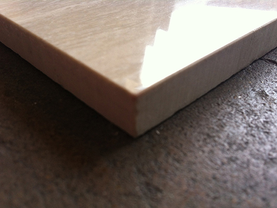 在上一步提到,瓷磚表面決定了鋪起來的效果是否平整,而瓷磚邊角的直度測試,目的就是要看看瓷磚整體鋪貼是否整齊,縫隙大小是否一致。這時候我們拿起幾塊瓷磚一同鋪放到平整的地面上,留心觀察瓷磚與瓷磚的縫隙是否一致,瓷磚的邊角是否可以拼湊而且沒有太大排斥。如果邊角直度不正規話,鋪起來的瓷磚一定是不整齊的,這很影響整體的鋪貼效果,大家要留心注意。
