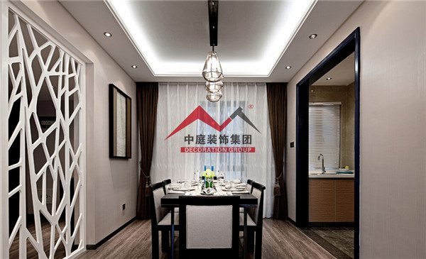 餐廳做了個簡單的吊頂,利用筒燈跟燈帶做照明,垂釣式的燈泡燈,簡單又有格調,讓空間變的有設計感。