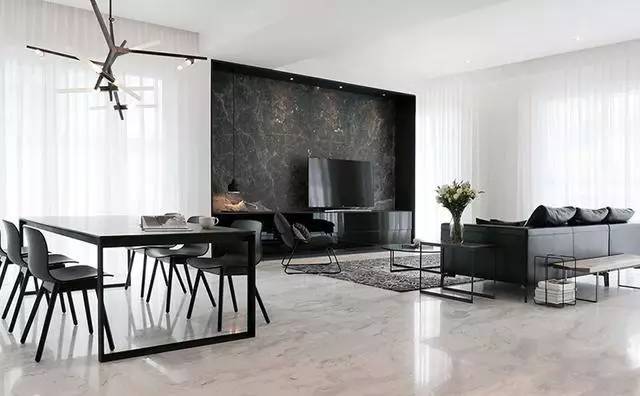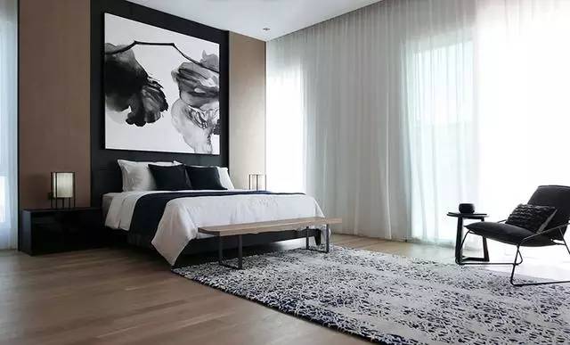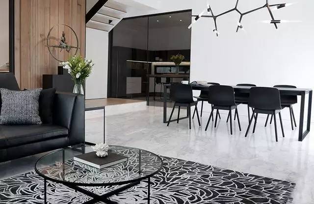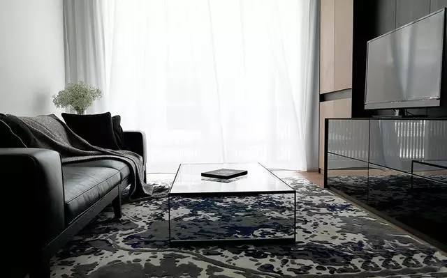 ▲黑白拼色花紋的地毯搭配圓形的玻璃茶幾,為我們展示了同種材質的多種美感。