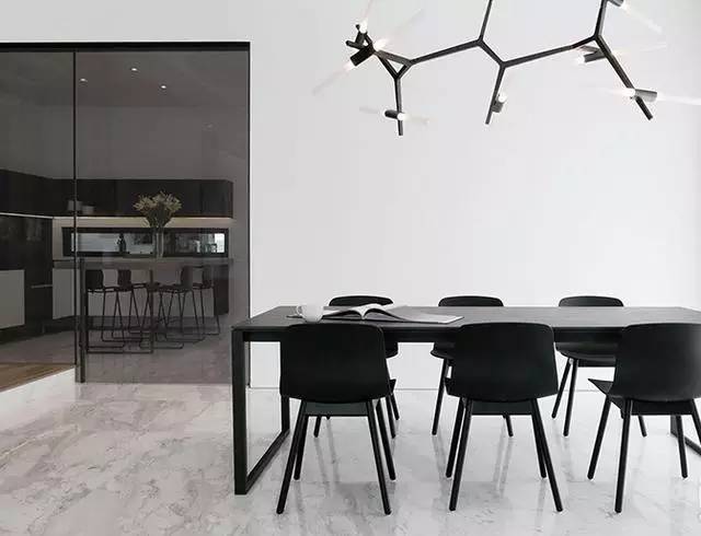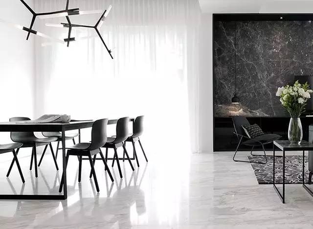 ▲淺灰白色的大理石光滑而有質感,加之天花板也被刷白,整個空間看起來清爽極了。