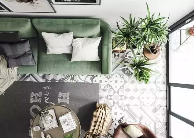 綠色與白色的空間開闊明朗,搭配黑白色手工花磚以及各種地毯織物,豐富了家的層次感。家具風格以斯堪的納維亞風為主,低矮啊的家具很好的平衡了視覺感,白色墻面上用了一些攝影作品和畫作點綴,避免了單調性。北歐風格的簡約恰到好處的與這個清新的環境相融合。