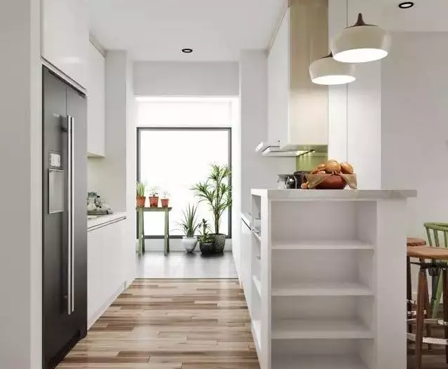 廚房以白色為主,將一部分的空間留白,平衡了整體效果。現代化的廚房不僅擁有高顏值,更加突出功能性與存儲性。