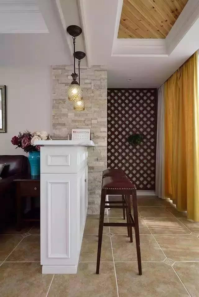 小巧的吧臺占據的位置非常小,利用陽臺和客廳之間的位置,做上一個小吧臺吧,這里的光線又好,晚上欣賞夜景也方便,實在是提升吧臺浪漫程度的一個好地方!