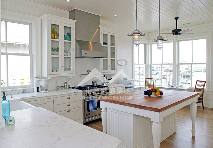 ▲在廚房裝修的時候最好選擇一些好拆卸好清洗的頂板,中國人做菜最喜歡的就是煎炒烹炸,整體煙熏火燎,就算有抽油煙機,等時間長了,也會給頂面沾上一些油污,這樣也不用擔心臟亂差的問題。