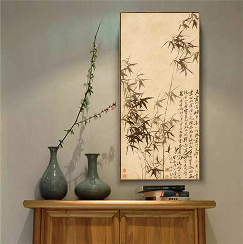 書房要求營造濃厚的文化氣息和靜謐的環境氛圍,掛畫應選擇優雅素淡的畫面風格,如選用一些書法、山水和風景等題材的畫作。