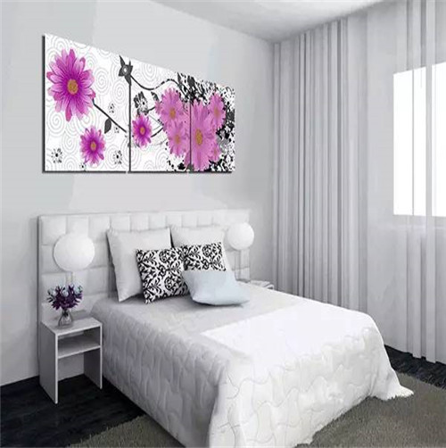 臥室是個人生活的私密空間,也是休息睡眠場所。臥室要營造溫馨浪漫、舒適恬靜的氛圍,掛畫以暖色為主色調。可以選擇人物人體、花卉等題材掛畫,當然也可以掛自己的肖像畫或結婚照,以增進感情。