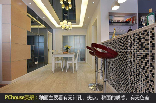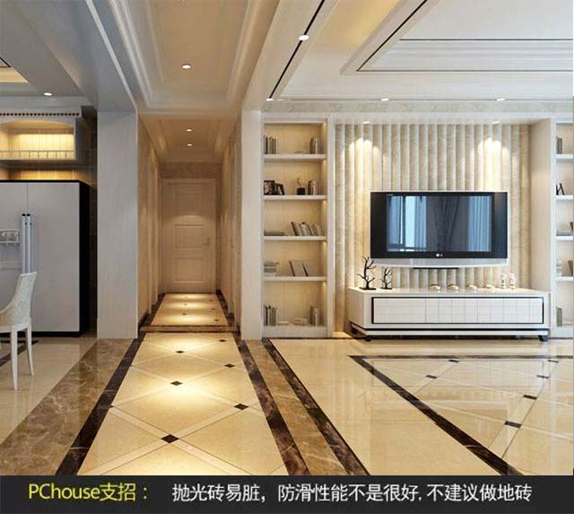 PS:如果使用了拋光磚,平時家中盡量開小燈,還要避免燈光直射或通過反射影響到眼睛;由于白色和金屬色瓷磚反光較為強烈,不適合大面積在居室使用。