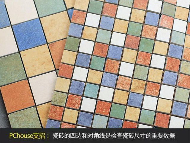 在購買瓷磚的現場測量。用直尺或卷尺測量,瓷磚的四邊和對角線,檢查尺寸。