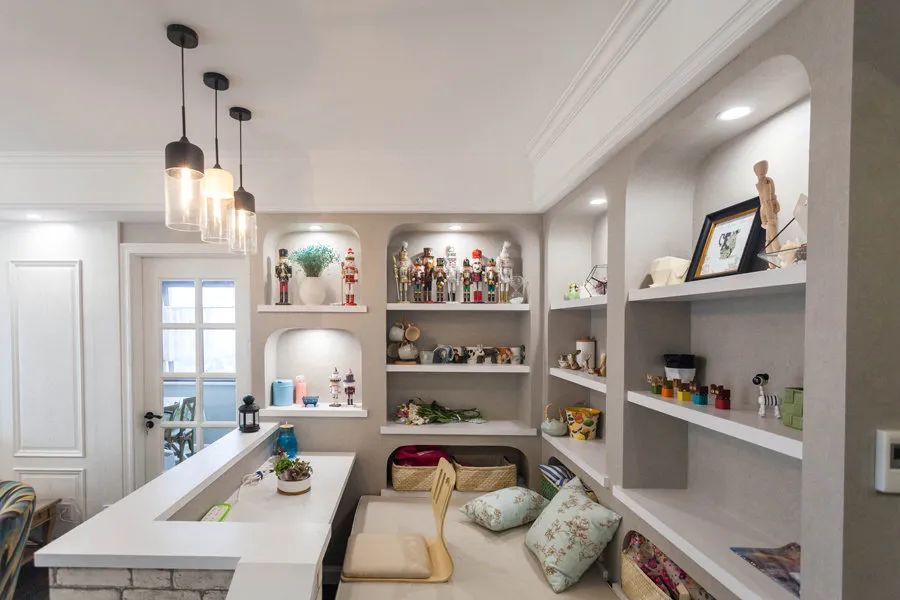 在廚房區域,用來放置一些調料或者餐具之類的物品,不僅一目了然,方便拿取,也有裝飾的效果,好看實用。