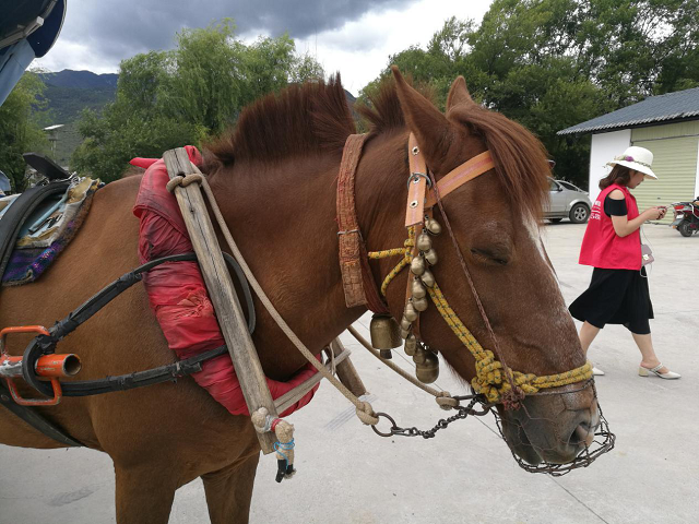 一家人坐在馬車上,享受著束河古鎮的寧靜。