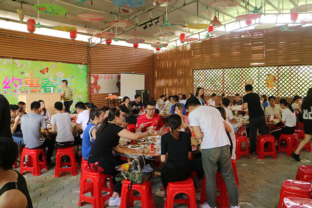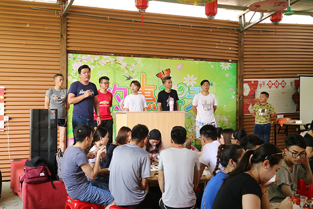 小憩時刻,與家人們共同享受美味佳肴。在品嘗美食時刻,主持人張經理,邀請員工代表發言感想。