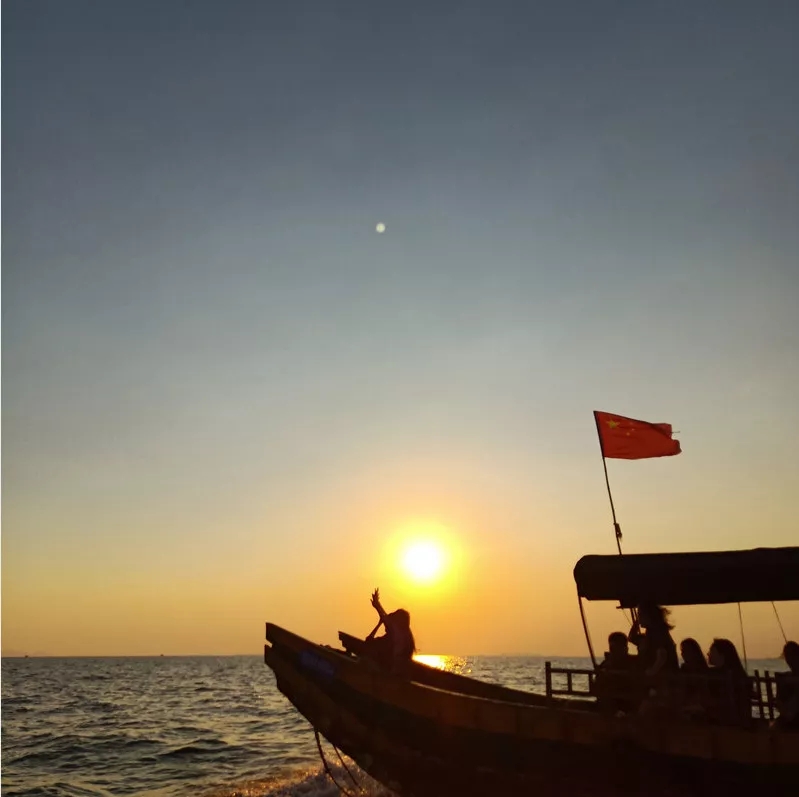 傍晚時分,雖說太陽快落下了,但仍然光芒四射,耀得人睜不開眼睛。