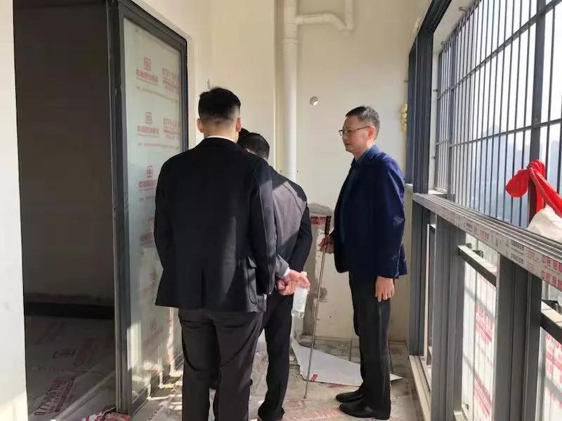 在參觀完中庭裝飾集團展示廳及樣板房后,丁總及集團領導陪同洪斯君先生一起來到了新民宿舍的工地,現場進行巡查和指導工作。