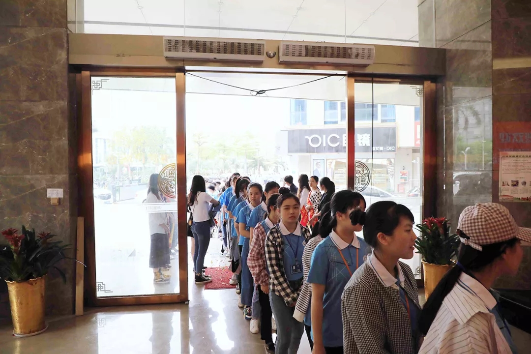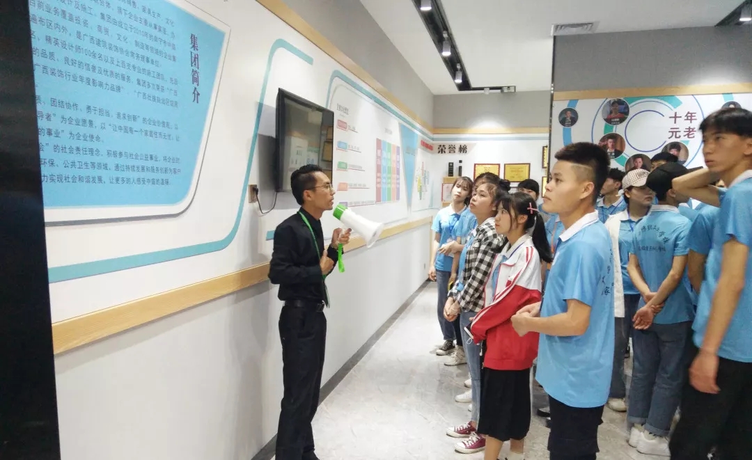 4月10日,在繽紛多彩的禮花中,在集團員工熱烈的歡迎下,廣西紡織工業學校150多位師生來到集團參觀交流,洽談校企合作事宜。