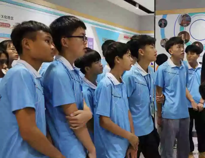 人資部經理劉高才、主管黃丹丹帶領紡織工業學校學生參觀文化長廊,向學生們介紹公司企業文化理念、組織架構、服務理念、企業榮譽、員工關懷等方面內容,讓學生們對公司的企業文化有更深的了解。