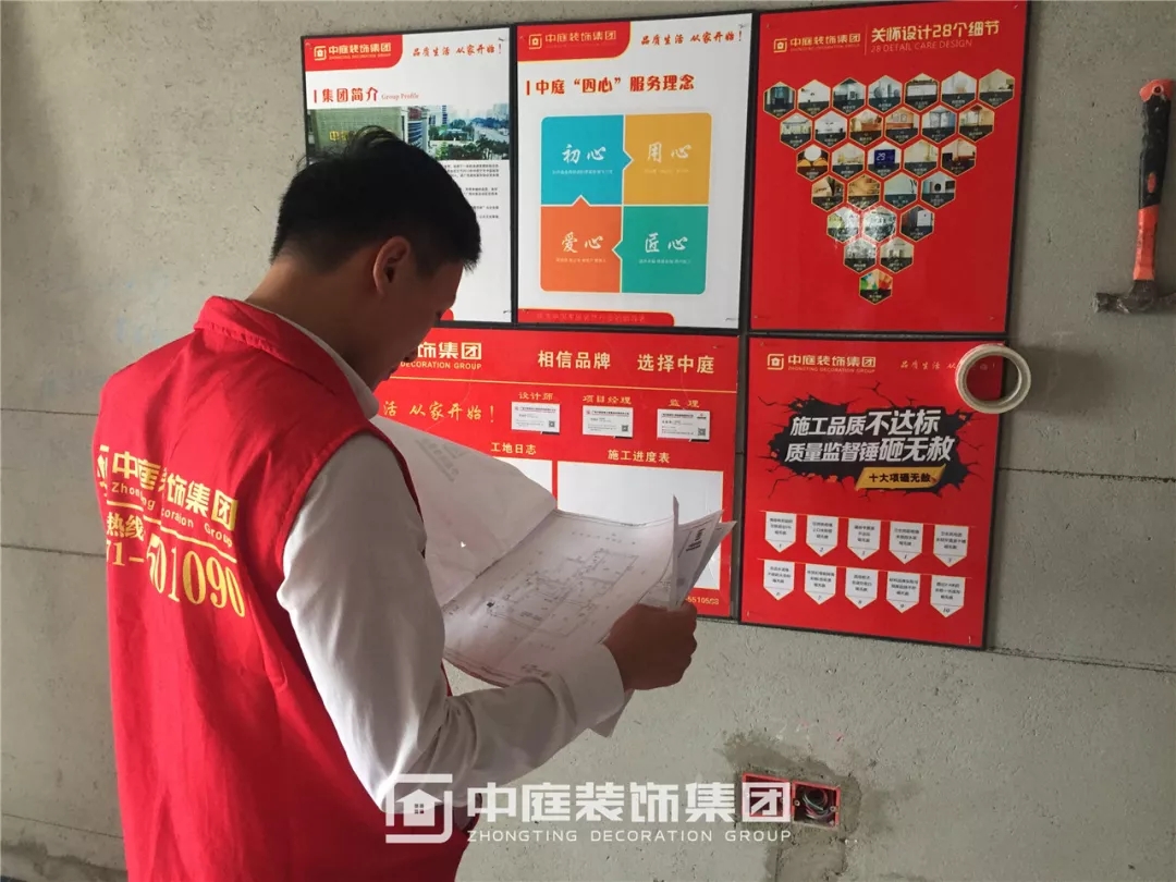 巡檢過程中偶遇業主,在與巡檢人員在現場交談時,客戶表示,水電隱蔽工程是她最關心的問題,隱蔽工程做的好與不好,是一家裝修公司靠譜與否的體現。正是因為看過中庭的隱蔽工程項目,才讓她毅然決然選擇了中庭。