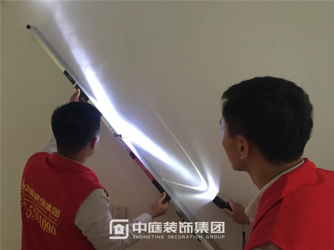 強光光線無法穿透靠尺并產生折射,墻面平整度達標。