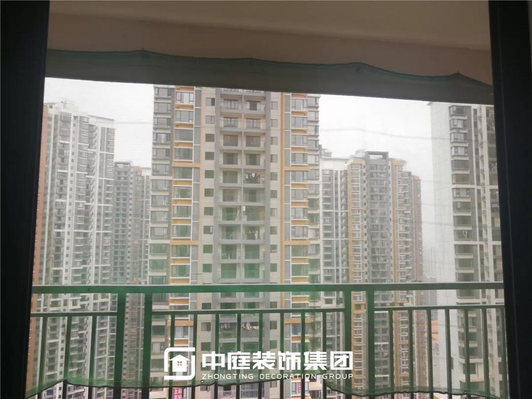 防護掛網懸掛到位。綠色防護掛網,醒目的顏色為工人的施工安全保駕護航。細密的掛網也避免了在陽臺切割瓷磚時造成大量的灰塵飄逸出去,保護小區環境。