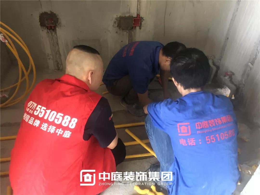 施工現場線管鋪設橫平豎直,按照集團施工規定使用鐵皮卡扣固定,管和管之間留有足夠縫隙,以便鋪設地磚時水泥砂漿進入管下,避免地磚后期出現空鼓。
