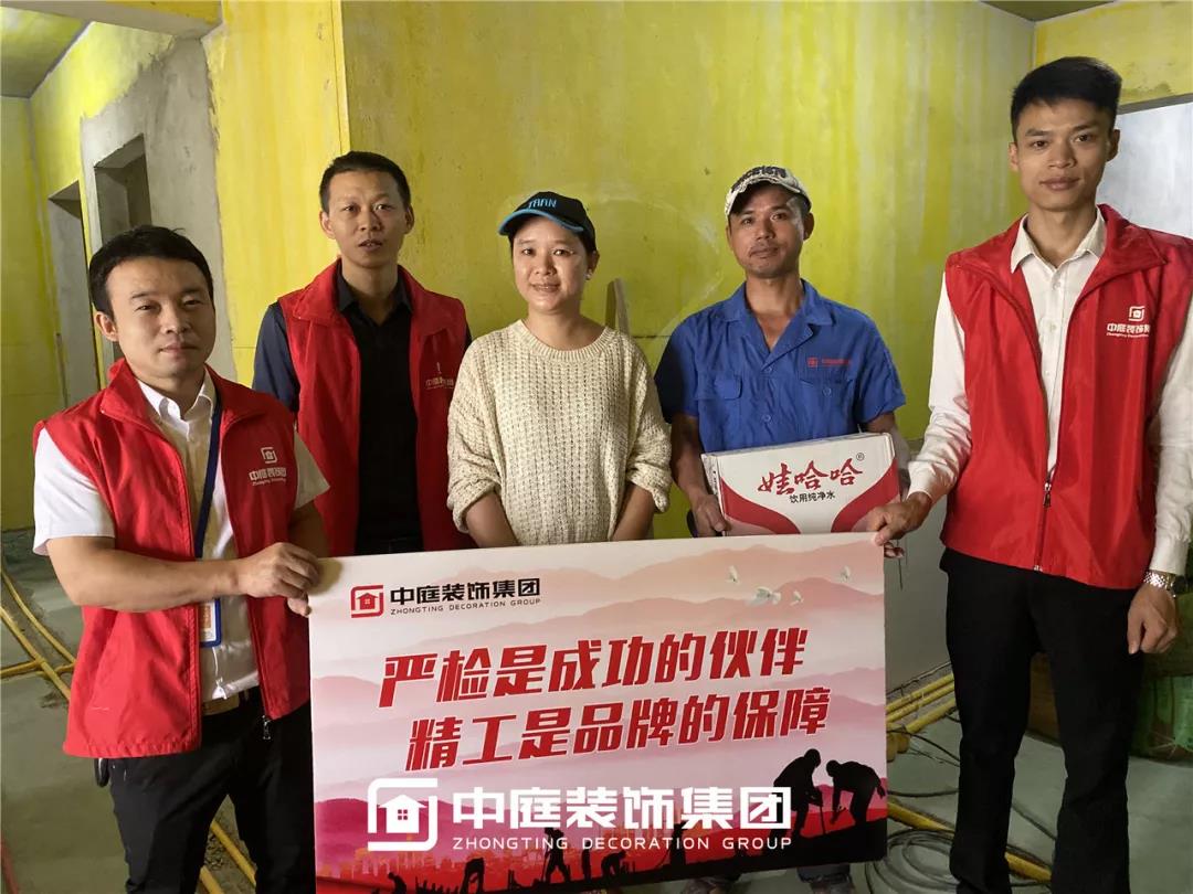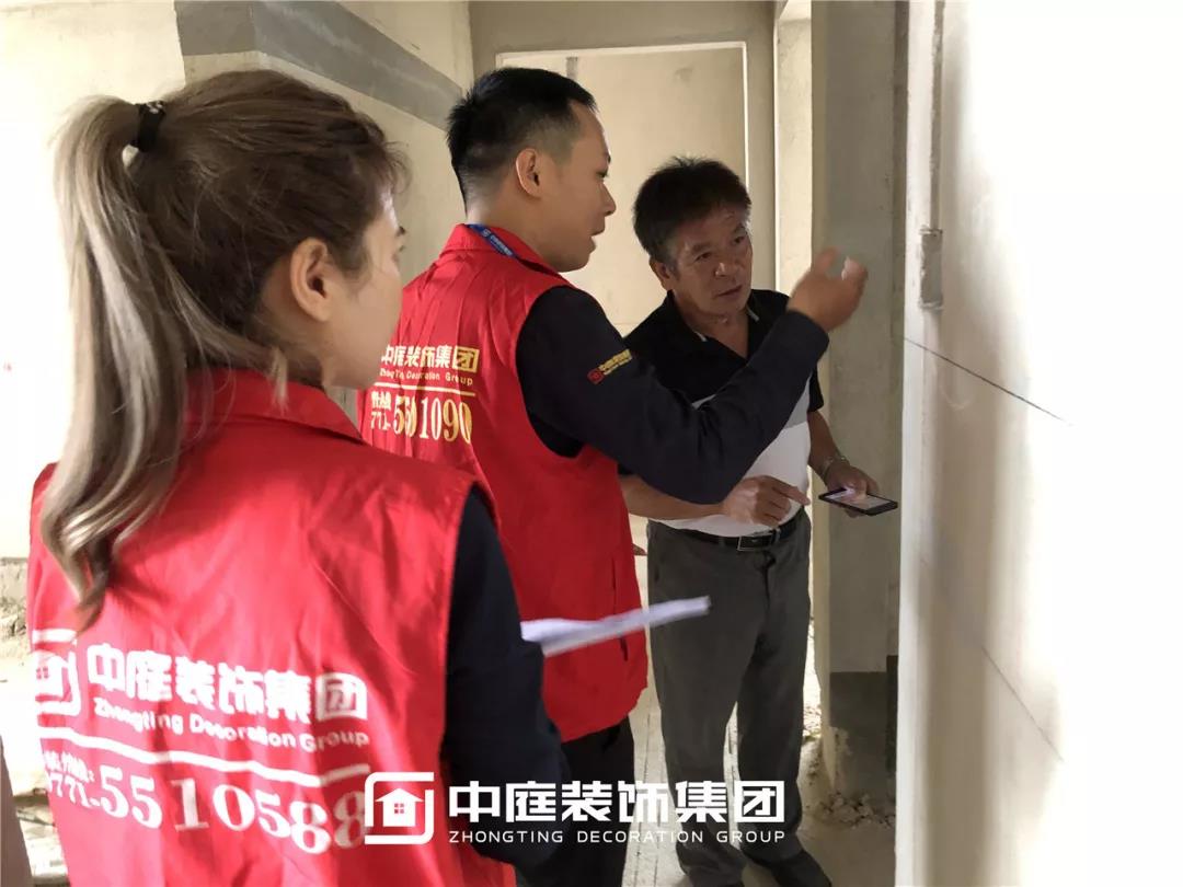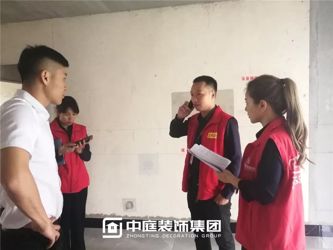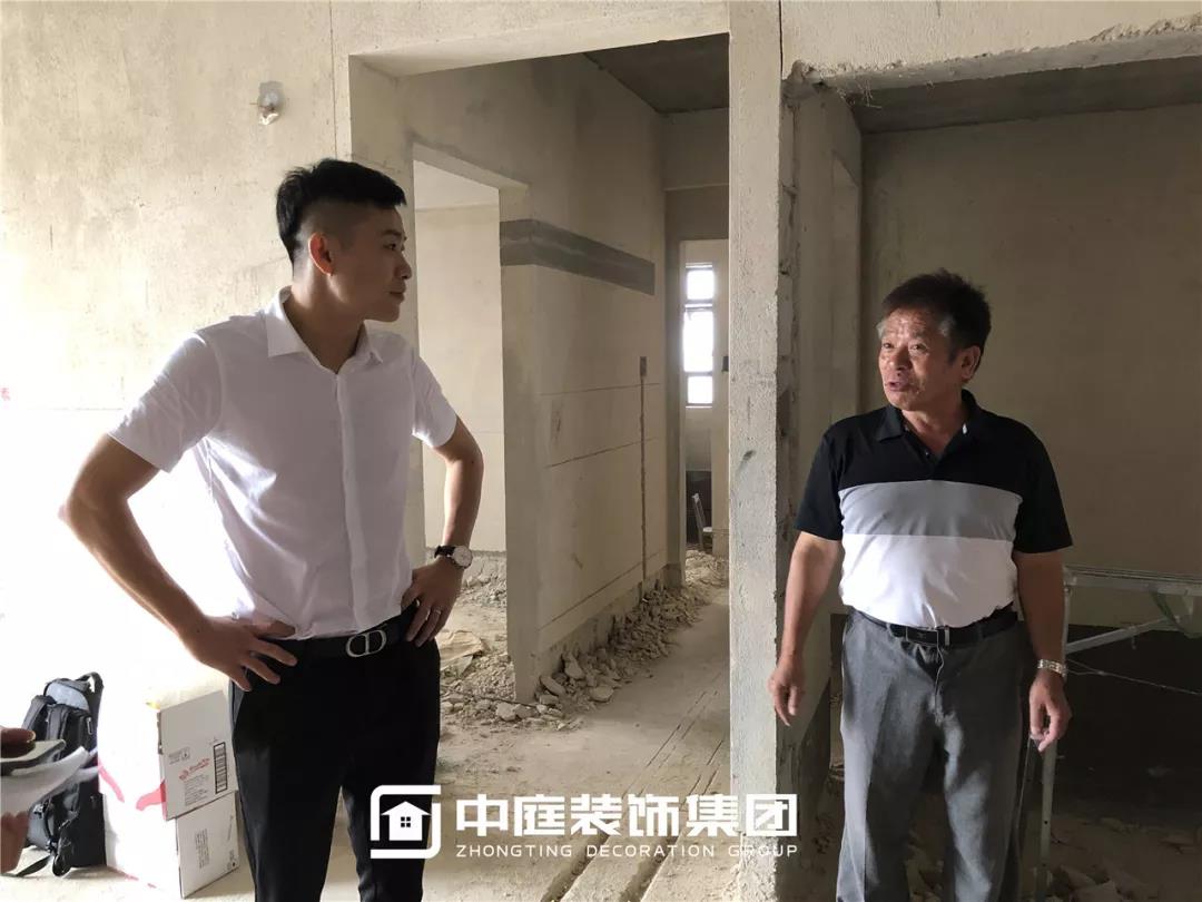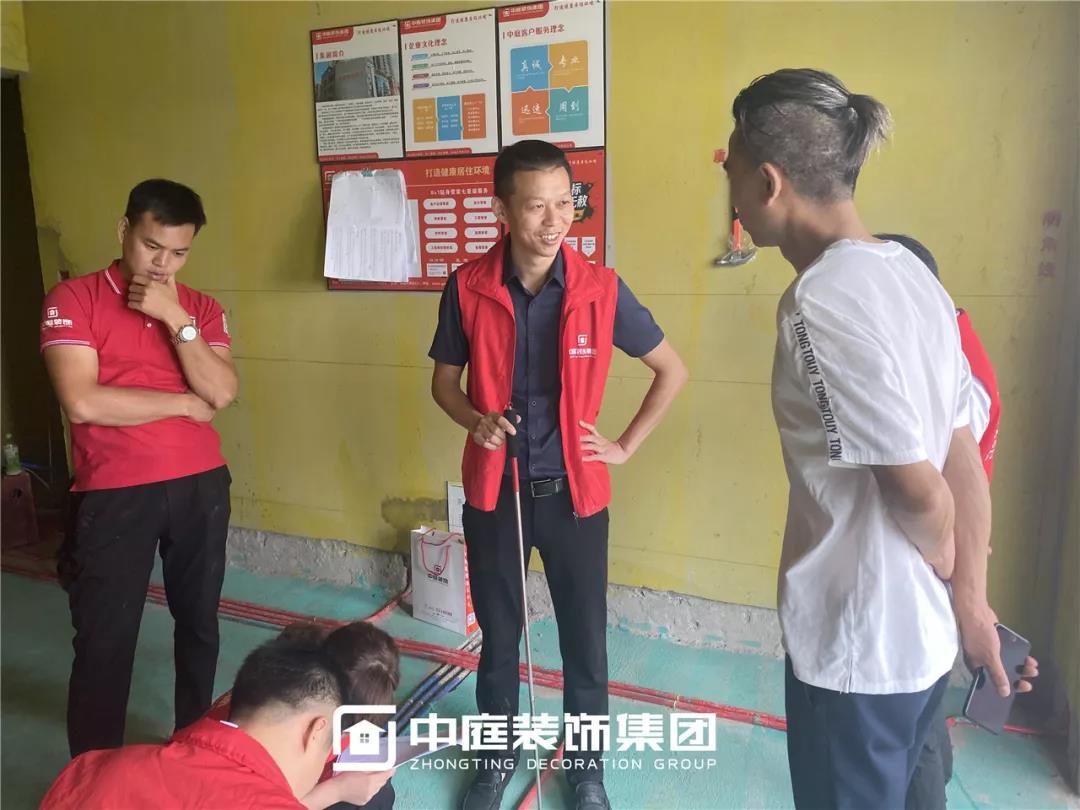 丁胡總裁在工地現場與業主交流,深入了解業主朋友們的需求,并親自叮囑如工地上有任何問題處理有困難,可以隨時撥打總裁熱線,24小時內必定快速拿出解決方案,保時保質推進施工進度,為業主打造健康品質家。