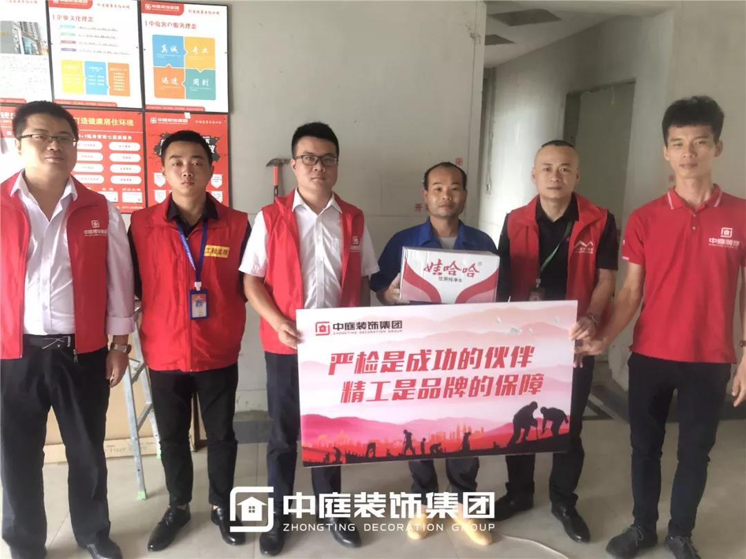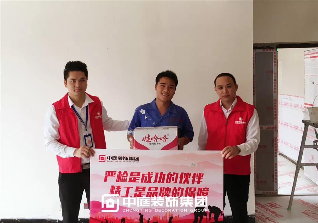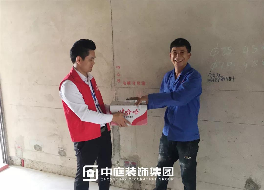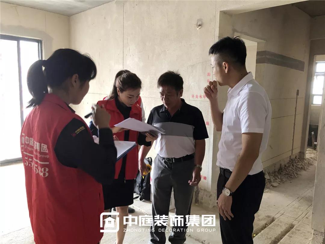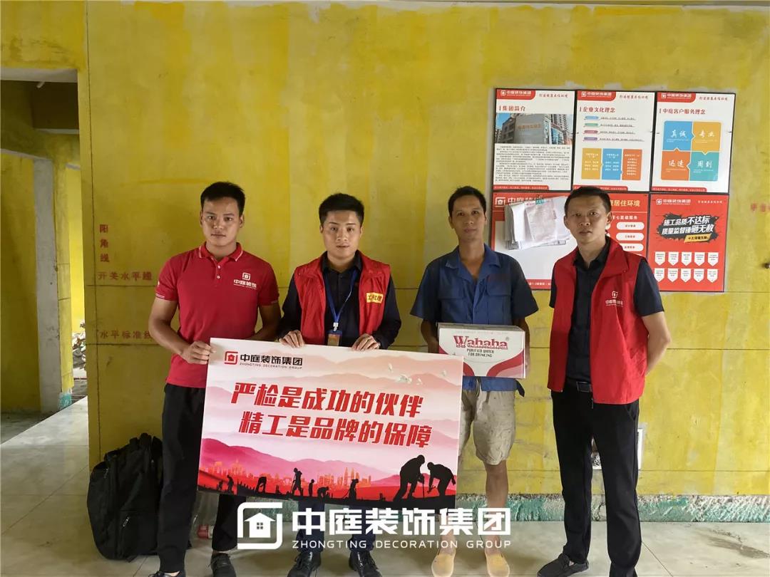 丁胡總裁在工地現場與業主交流,深入了解業主朋友們的需求,并親自叮囑如工地上有任何問題處理有困難,可以隨時撥打總裁熱線,24小時內必定快速拿出解決方案,保時保質推進施工進度,為業主打造健康品質家。