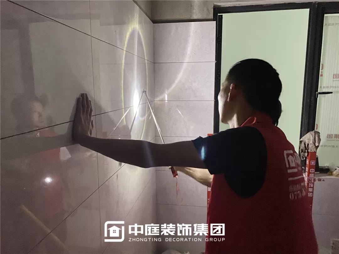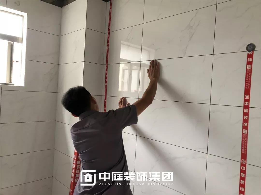 十字卡扣留縫鋪貼,對縫整齊。(瓷磚留縫可防止瓷磚在熱脹冷縮中出現起鼓、開裂、翹邊等情況。)