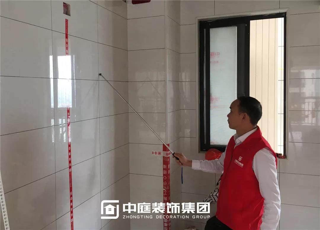檢查瓷磚鋪貼是否平整干凈,有無錯貼漏貼;以及鋪貼縫隙是否均勻,有無缺角、裂紋。