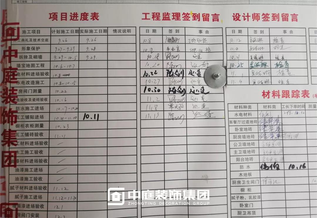 現場施工銘牌和簽到板,能夠讓業主和巡檢人員在工地及時了解整個工程進度、質檢記錄、相關工作人員信息。