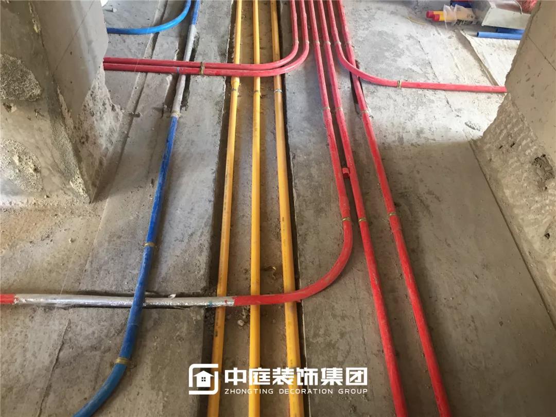 施工現場線管鋪設橫平豎直,按照集團施工規定使用鐵皮卡扣固定,管和管之間留有足夠縫隙,以便鋪設地磚時水泥砂漿進入管下,避免地磚后期出現空鼓。
