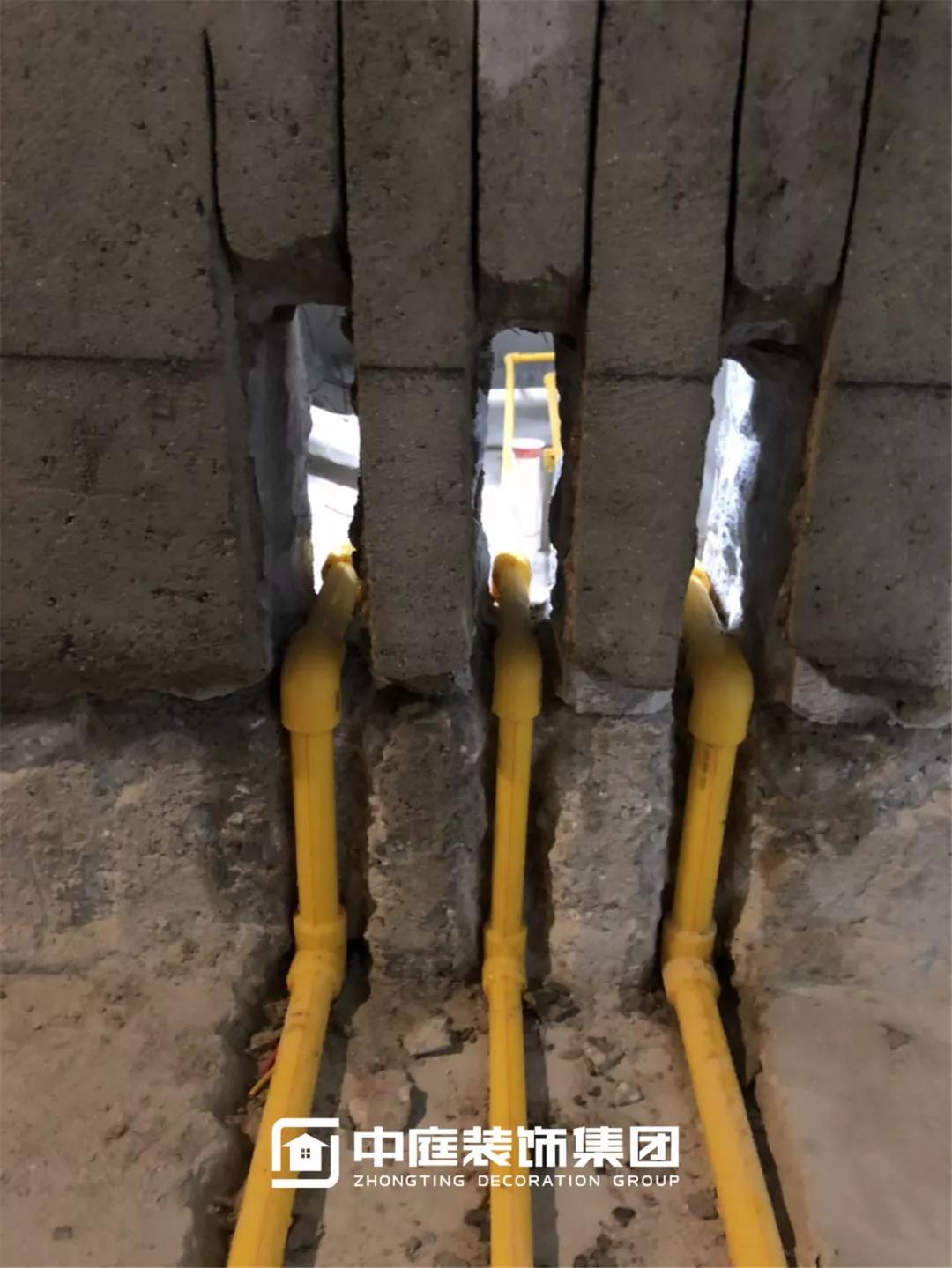 品質家3.0升級新工藝:水管翻地梁。進衛生間水管翻墻,防止后期瓦工施工踩踏到水管,導致水管震動引起防水開裂,從而導致防水漏水。