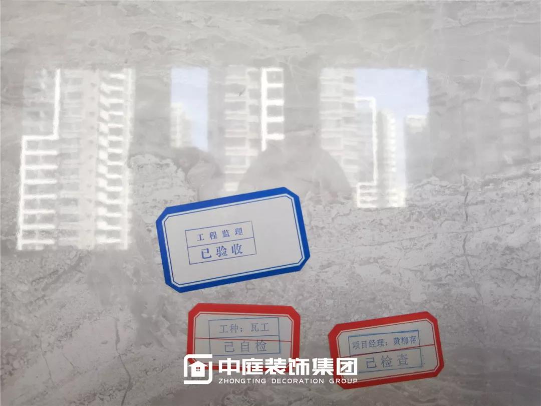 施工后,項目經理進行自檢自查,隨后監理做驗收檢查,對達標的鋪磚工程進行驗收并貼上質檢驗收標識。