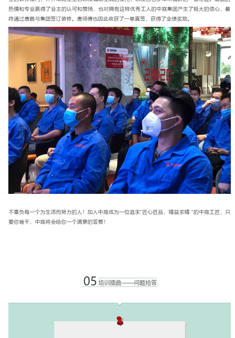 緊抓思想統一 | 2020年中庭集團第一期工人庫精英培訓圓滿結束!
