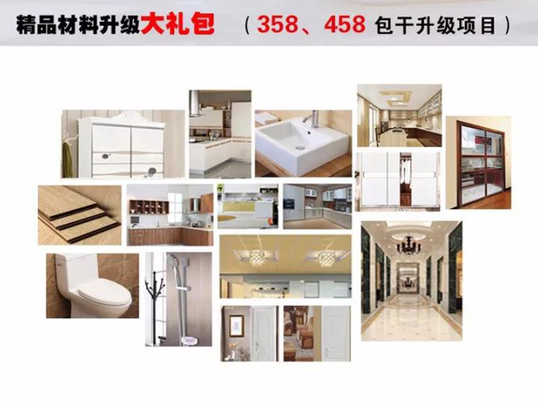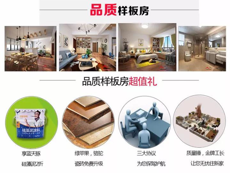 全房精品主材,墻漆,吊頂、瓷磚、木地板、衛浴、櫥柜、室內門,等免費升級,您可以選購到自己心儀的家裝建材,還能享受超級折上折哦!