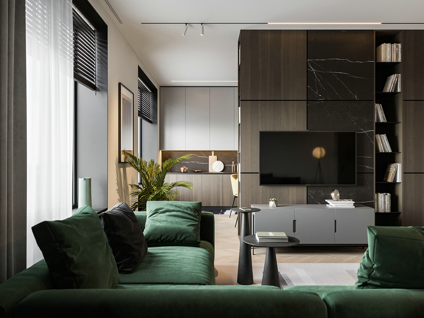 簡潔、舒適,沒有多余的裝飾,線條簡單,室內空間大方。