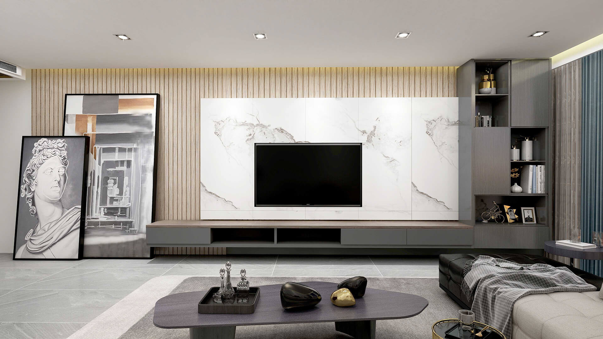 榮和公園里現代簡約風格案例,一個時尚簡約的現代風格套房,面積128㎡,非常寬敞且實用,設計師利用自然光線、燈光,為室內帶來通透明亮的視覺感受,搭配了大量的木質元素以及金屬元素,以最簡單的方式創造出溫暖與舒適。