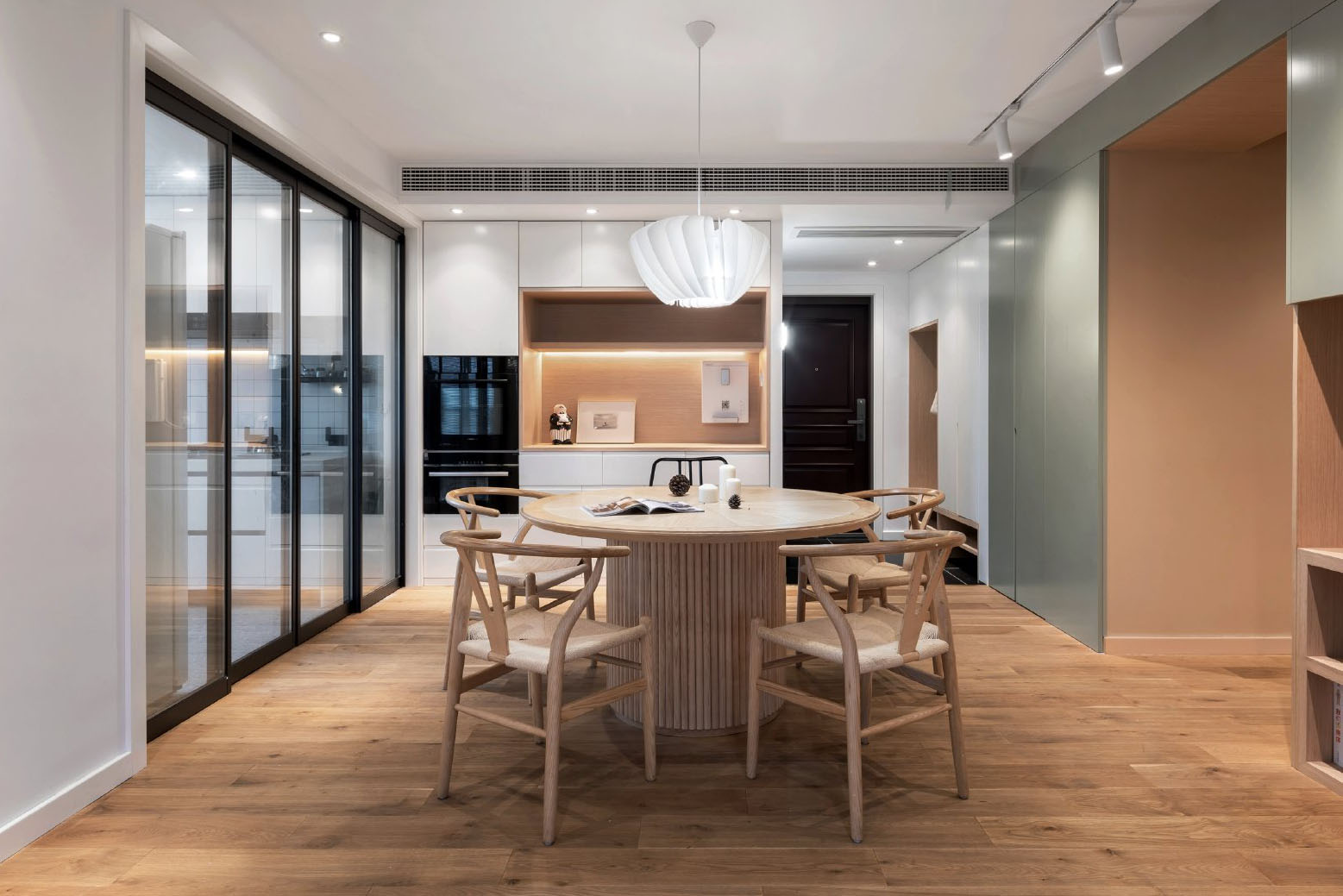 天健西班牙小鎮129m2案例,該案例是北歐風格,自然、柔軟、簡潔,北歐風格隨意,卻更親切,讓打拼一天的人們回到家就可以享受到安逸的時光,此案例多用淺色調,如白色、米色、淺木色等。整體以白色為主色調,再使用鮮艷的純色作為點綴。使得營造出來的空間,給人以干凈明朗,毫無雜亂之感。
