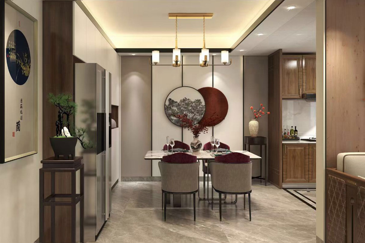 瀏覽量:446天立TT國際258㎡案例,戶型為:四房兩廳兩衛,屬于新中式風格。整體家具陳設講究對稱,重視文化意蘊,整體以深色為主,以古香古色的中式擺件、掛畫來點綴空間,在一些細節上勾勒出禪宗的意境。但同時會使用現代時尚元素,比如附帶金屬邊框的桌椅、花瓶,以及背景掛飾等,使整體的家居設計中既有中式家居的傳統韻味,又有現代家居的時尚大氣。