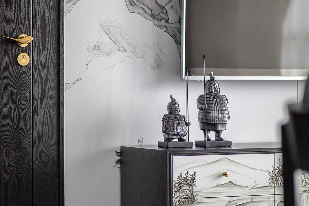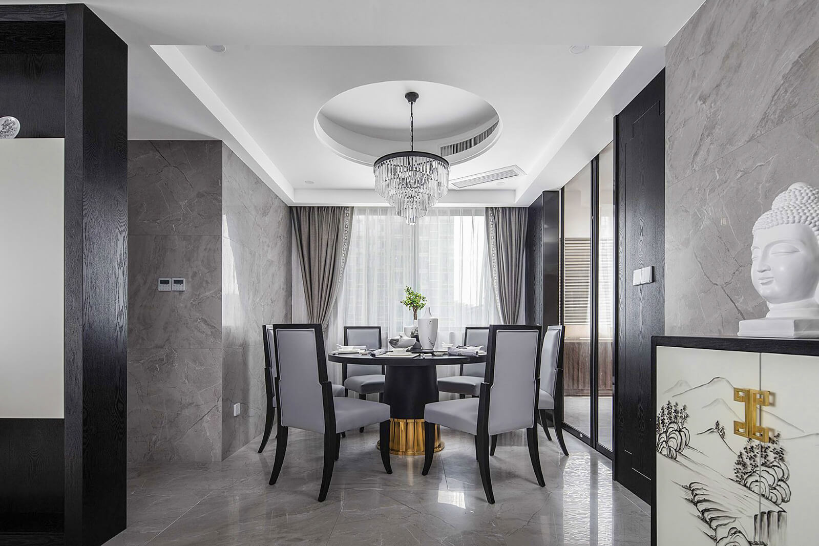 本案為142㎡新中式風格案例,以東方的"留白"美學觀念控制的風骨,顯出大家風范。設計師采用合理的布局,格調高雅,造型簡樸優美,色彩濃重而成熟。謹以此作,表達對清雅含蓄、端莊豐華的新中式精神境界的追求。