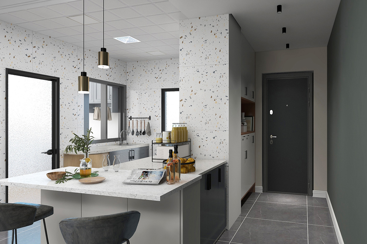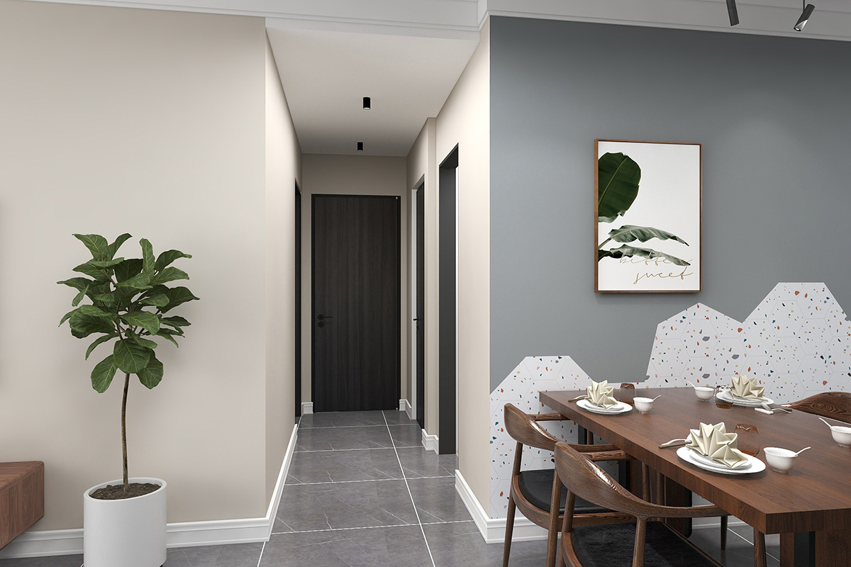 本案戶型為:3室2廳2衛,總面積105㎡。現代簡約風格以簡潔的視覺效果,營造出時尚前衛的氛圍,現代家居設計不僅僅為了滿足生活需要,更要兼具靈動脫俗的藝術美感。本案設計滿足了業主的需求,為業主提供一個簡約時尚又大氣的居家氛圍。