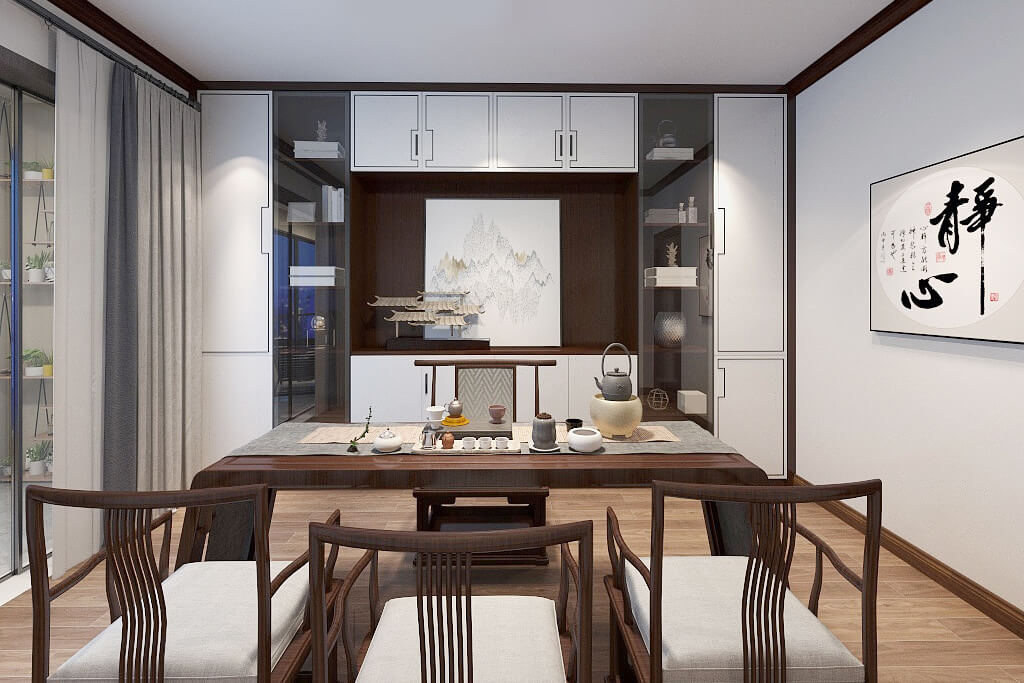 瀏覽量:408在空間上的裝飾多采用簡潔硬朗的直線條,直線裝飾在空間中的使用,不僅反映出現代人追求簡單生活的居住要求,迎合主人家對中式家具的喜愛,中式的家具追求內斂、質樸的設計風格,更加實用、更富現代感。新中式風格的古典高雅又含有現代風格的時尚元素,通過對傳統文化的認識,將現代元素和傳統元素結合在一起,以現代人的審美需求來打造富有傳統韻味的事物,讓傳統藝術在當今社會得到合適的體現。