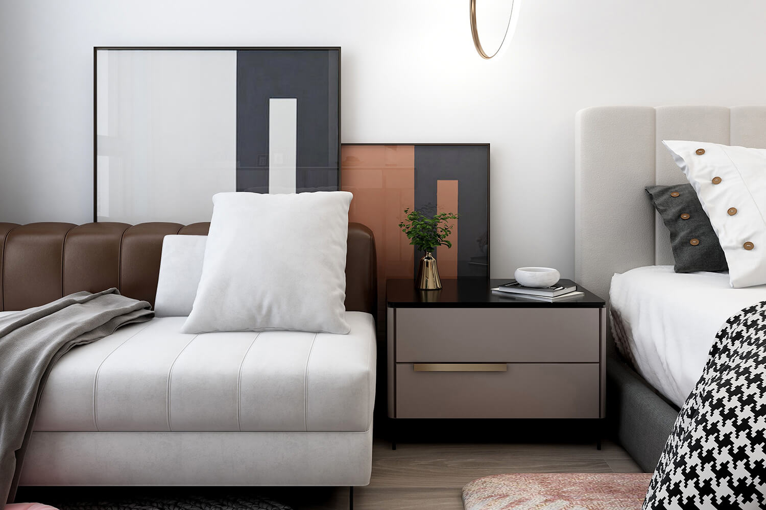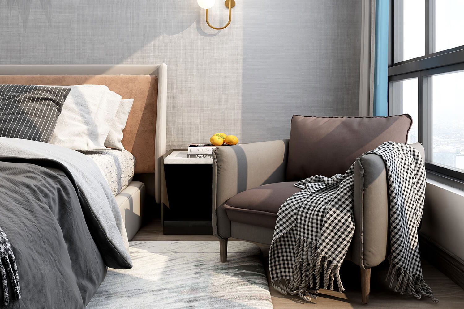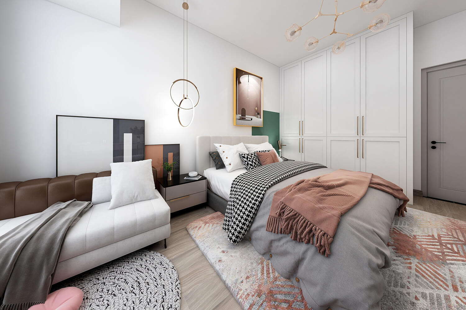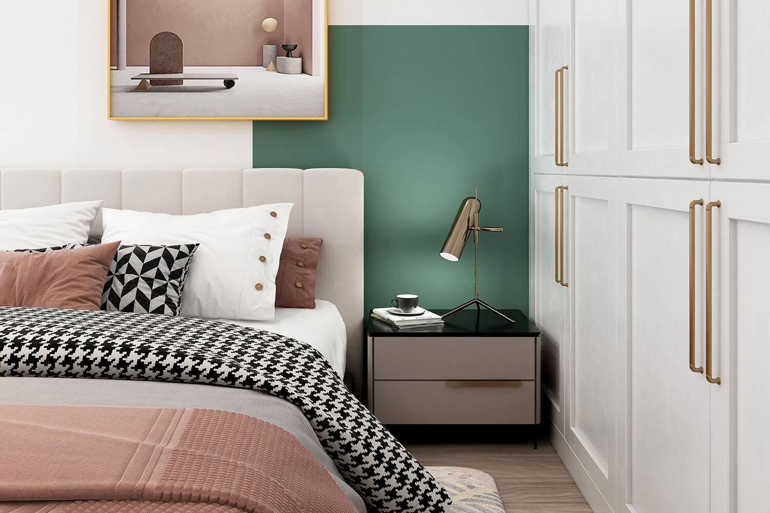 本案總面積118㎡,整體配色以白色為主色調,用充滿清新氣息的綠與藍為空間帶來清爽感覺,點亮空間視覺色彩感知,展現別具一格的視覺感,華麗的金屬色澤增添輕奢質感。
