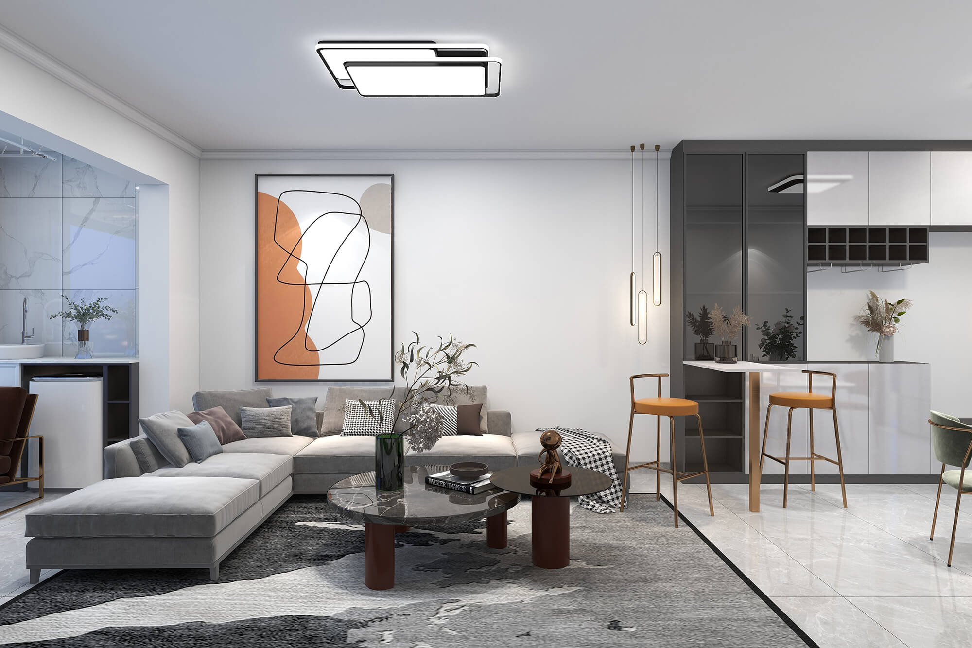 本案總面積109㎡,以現代簡約為基底,舒適自然為核心,融合別出心裁的考量,打造精睿格調、人文藝術的品質居所。為此設計師在用色選材上大花心思,以溫馨典雅的淺色色、知性優雅的咖啡色,璀璨溫暖的橘棕色形成這座大宅獨特的氣質色彩,讓人感受到生活的愜意與放松。