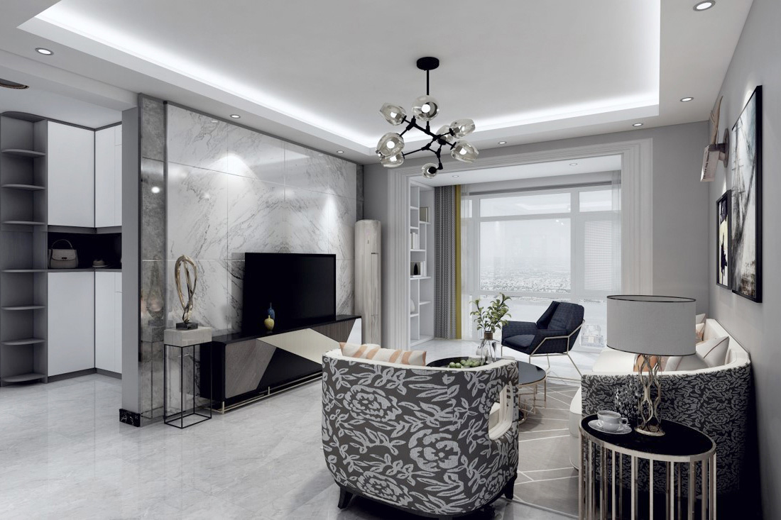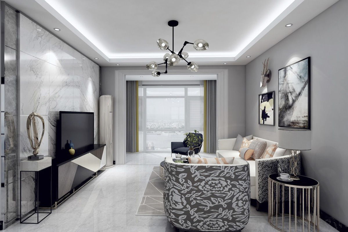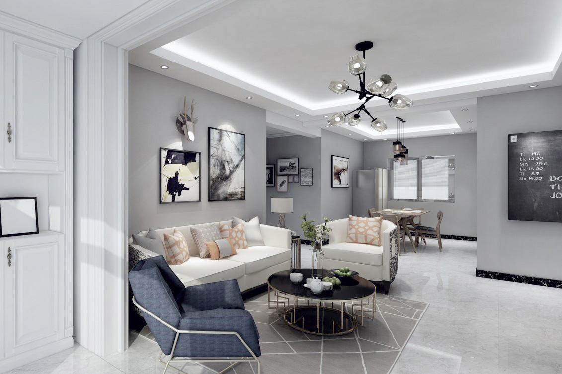 瀏覽量:318房屋整體主色調:黑白灰,踏入房門首先看到的是灰色墻面和黑色的矮柜形成鮮明的對比。給人的第一感覺有浪漫、時尚,卻不失美式中特有的奢華。墻面以灰色為主,地板以深灰色為主色。整體空間的動線非常流暢,給人很舒服的感覺。客廳整體設計偏美式,硬裝選色大氣,配以布藝沙發的軟裝,硬裝配以現代風格的電視背景墻,整體給人的感覺穩重而簡潔。美式的顏色不可過于濃重,在混搭風格中,只可點綴,它的作用是調節空間整體的氣氛。