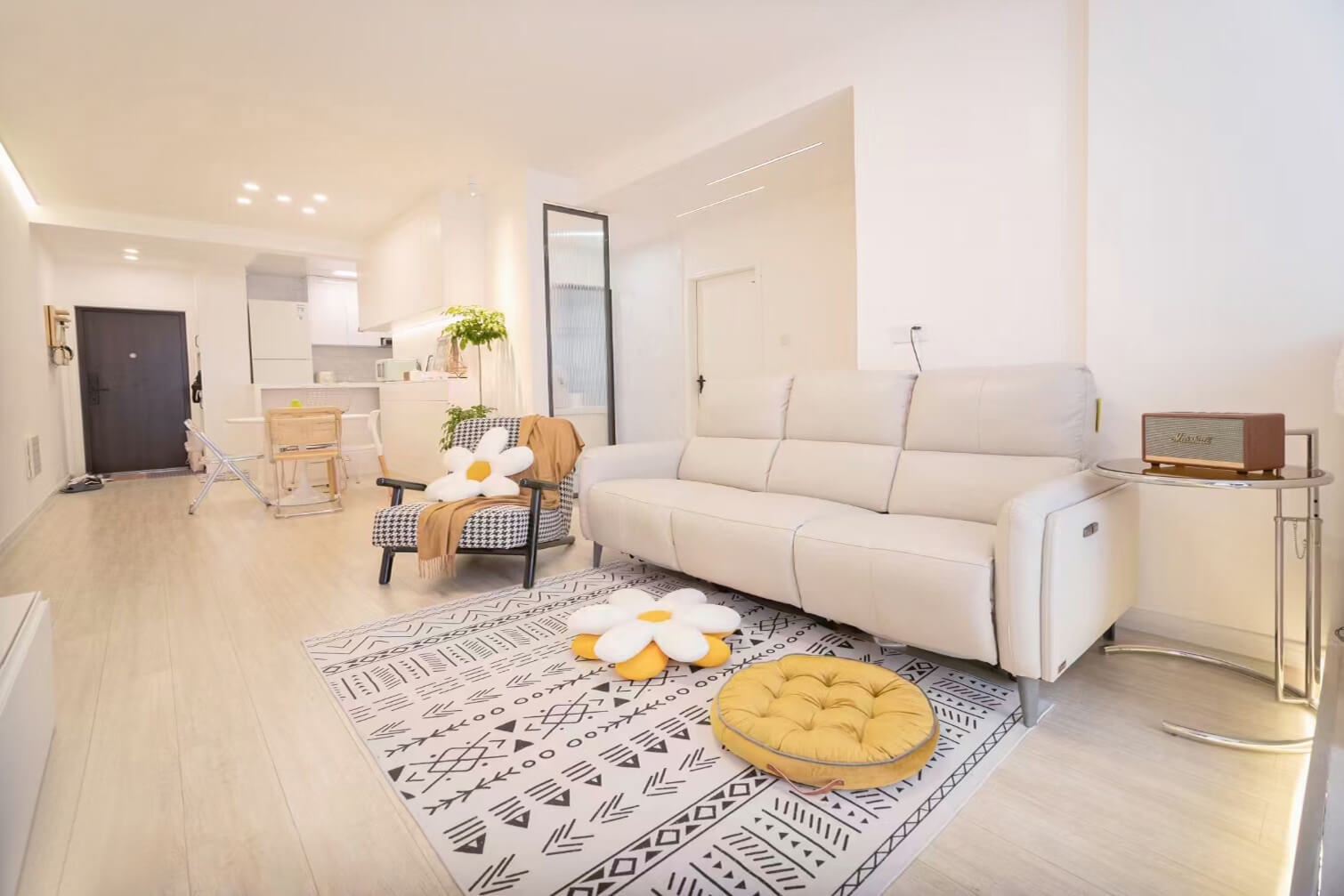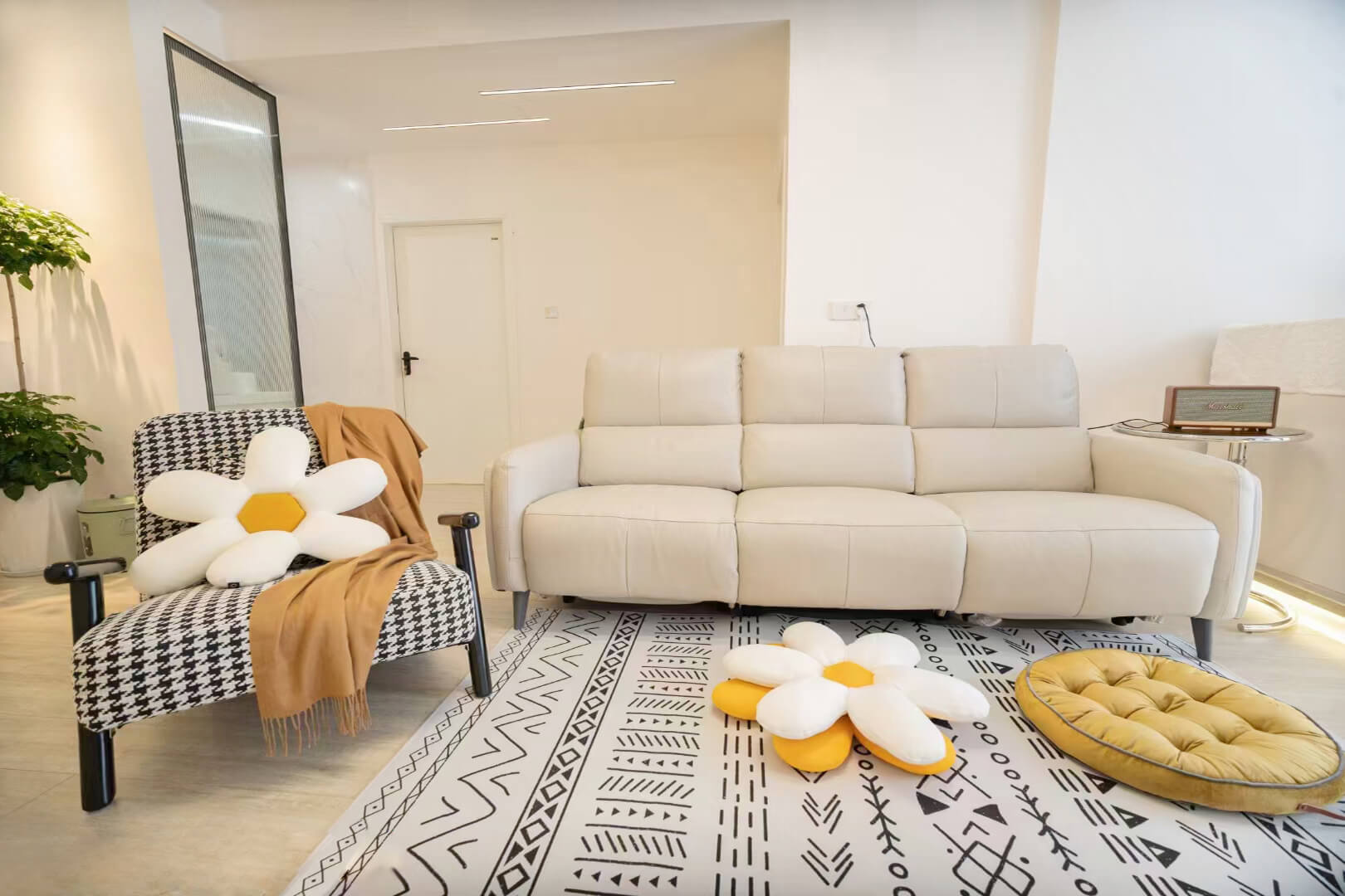 本案總面積85㎡。設計師以簡約的表現形式來滿足業主對于簡約卻不簡單的居室環境的要求。整體選擇白色為主色調,再以明快的黃色、橙色作為點綴,為業主提供一個簡單、自然的生活環境。
