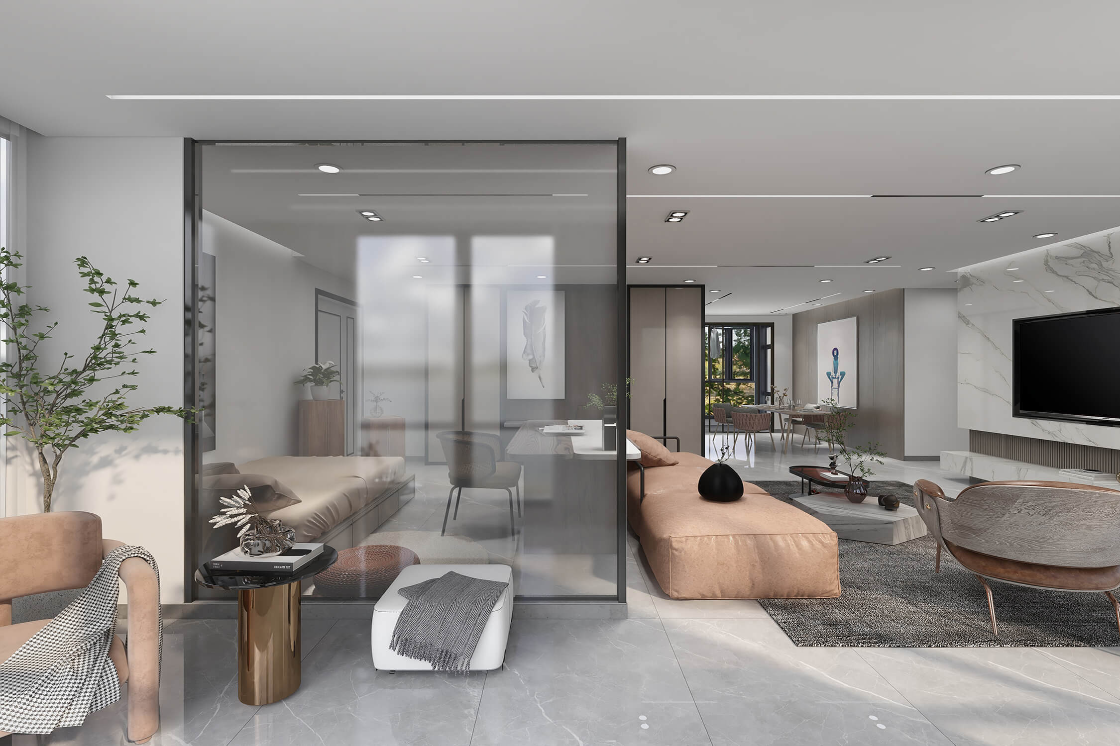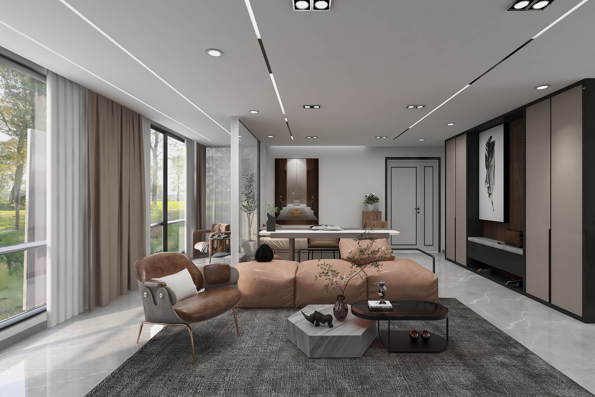 本案例是屬于現代輕奢風格,總面積達110m2。業主喜歡簡約有型但又不過于常規的現代風格,所以設計師采用了簡約現代畫與靈感齊發的幾何軟裝做造,融入木色基調,打造一個簡約時尚又大氣的藝術品味之家。