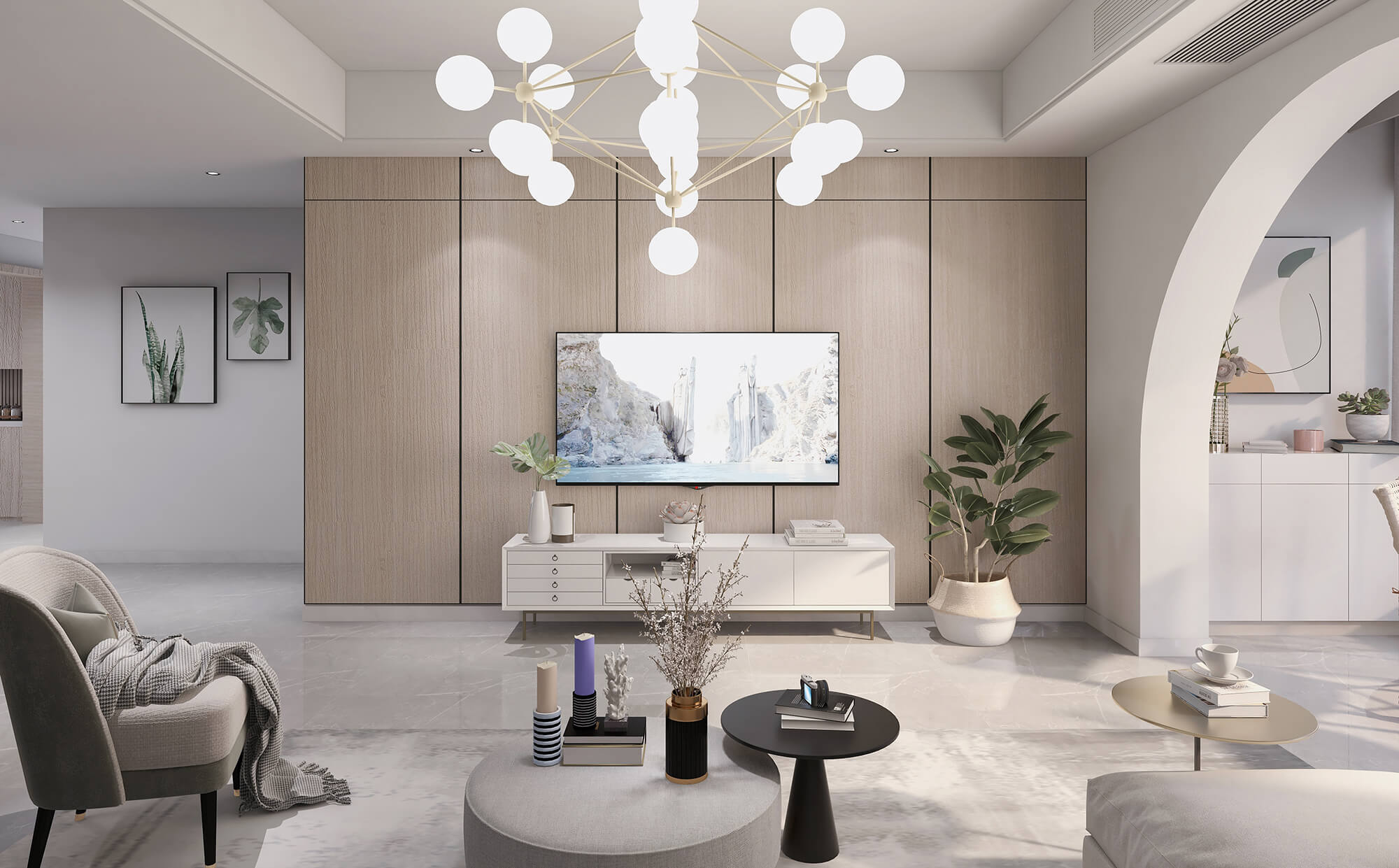 本案戶型為:3房2廳2衛,總面積110㎡。此案例以現代簡約為主線,設計師遵循自然流動的空間通透感,營造出一個藝術純粹靈動的空間,將現代的生活方式體現的淋漓盡致。